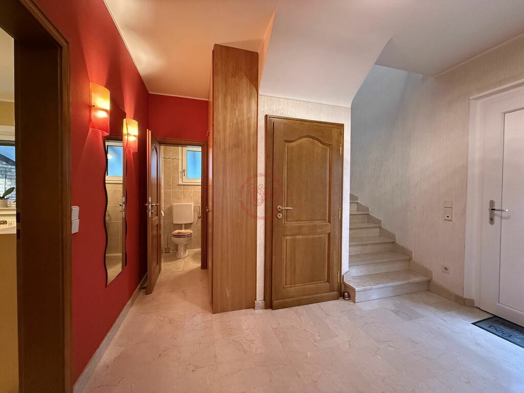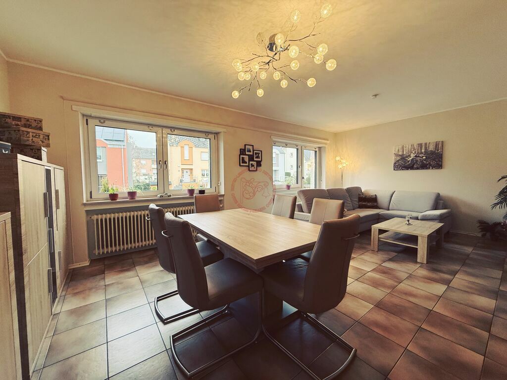 Dès l’entrée, vous découvrirez un hall accueillant avec armoire encastrée, menant à un vaste espace de vie lumineux comprenant le salon et la salle à manger.