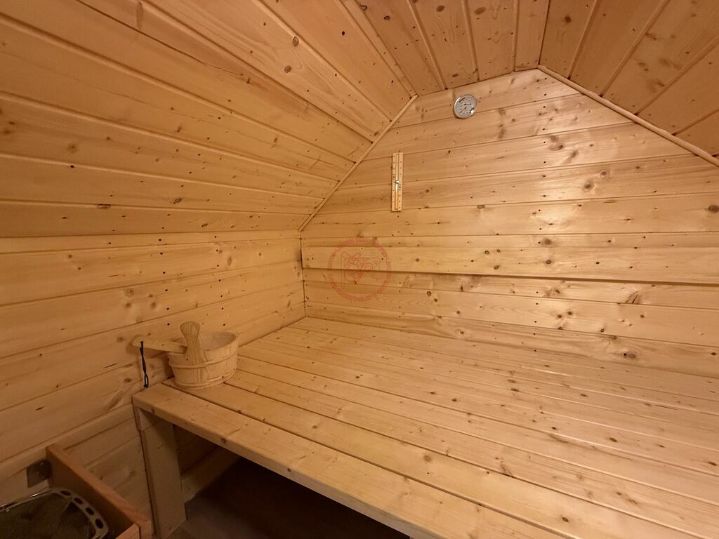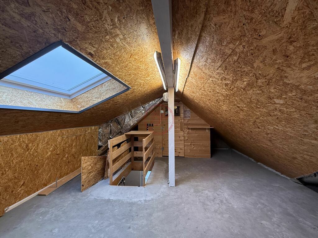 Le grenier, accessible par trappe, accueille un sauna privatif, offrant un véritable espace bien-être à domicile.